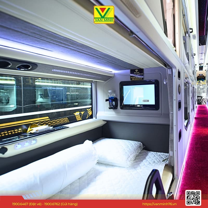 Xe giường nằm của Tuấn Trinh được trang bị đầy đủ các tiện ích và không gian rộng rãi, đảm bảo mỗi hành khách có thể thư giãn thoải mái suốt hành trình. Với thiết kế hiện đại và sang trọng, từ khăn lạnh, nước suối đến wifi miễn phí, nhà xe luôn quan tâm đến sự thoải mái và tiện nghi của quý khách.