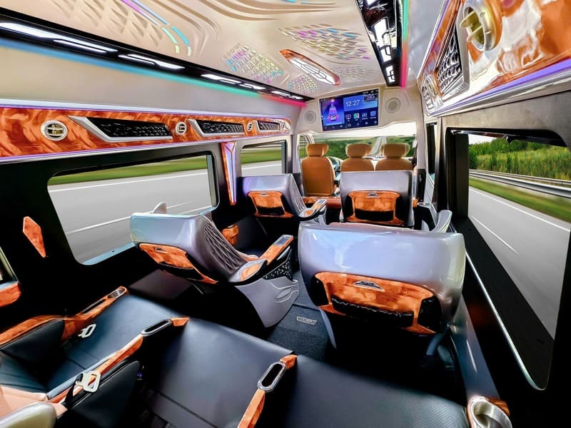 Điểm nổi bật của Bến Thành Limousine là mô hình vận tải “không chỉ đưa đón, mà còn phục vụ”. Toàn bộ dàn xe đều là Limousine ghế ngả hiện đại, bọc da cao cấp, tích hợp massage và cổng sạc USB riêng cho từng vị trí. Hệ thống điều hòa 2 chiều, wifi tốc độ cao và màn hình giải trí cá nhân đáp ứng mọi nhu cầu của khách trong suốt hành trình.
