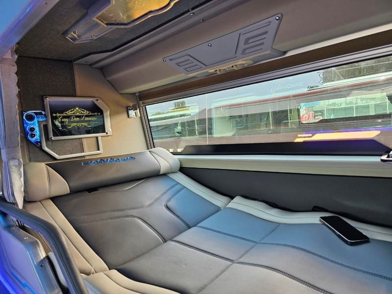 Hệ thống ghế nằm và limousine được thiết kế hiện đại, rộng rãi với đầy đủ tiện ích như chăn ấm, nước uống miễn phí. Không gian cabin êm ái giúp hành khách có thể nghỉ ngơi thoải mái trong suốt 11 giờ di chuyển.
