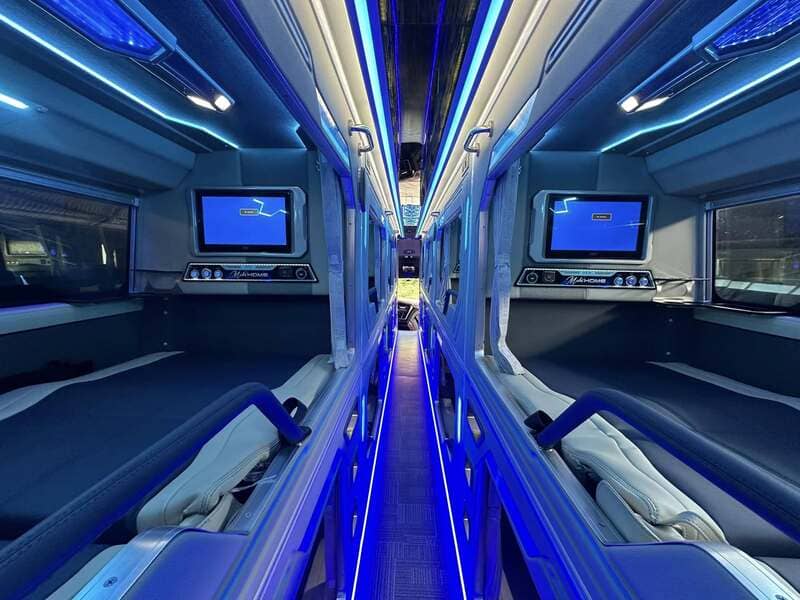 Nhà xe có hệ thống ghế giường nằm nhằm đảo bảo phục vụ khách hàng chuyến đi tốt nhất. Cùng với đó, nhà xe cũng cam kết mang đến thái độ phục vụ chuyên cần, tỉ mỉ kết hợp với đầy đủ các yếu tố đáng chú ý như giá cả đầy yêu thương, không gian xe sạch sẽ và sáng sủa, đầy đủ khăn lạnh và đồ uống miễn phí, nhà vệ sinh khép kín trên xe,… từ đó mà quý khách hàng tha hồ trải nghiệm cảm giác di chuyển trên một tòa lâu đài di động thứ thiệt.