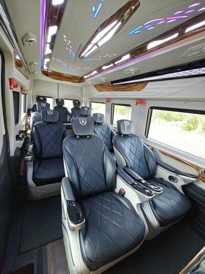 • Xe Limousine 9 chỗ: sang trọng, ghế da ngả lưng, wifi miễn phí, nước uống, phù hợp cho gia đình nhỏ hoặc nhóm khách VIP.