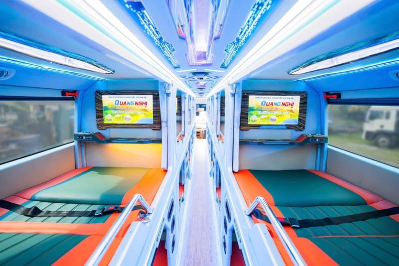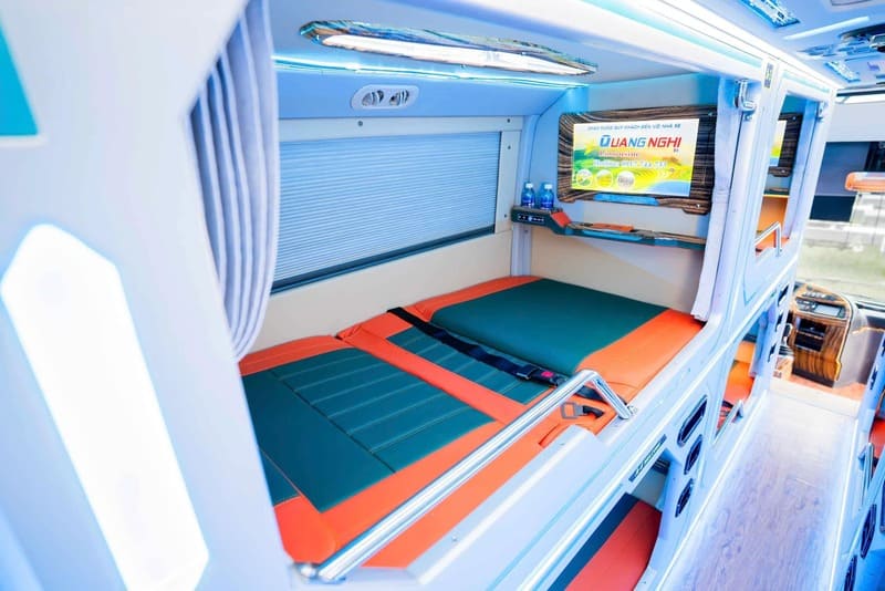 Nội thất xe được bảo dưỡng thường xuyên, đảm bảo luôn mới mẻ và sạch sẽ, cùng với các tiện ích hiện đại như giường nằm êm ái, điều hòa, và wifi miễn phí giúp hành khách thoải mái trong suốt hành trình.