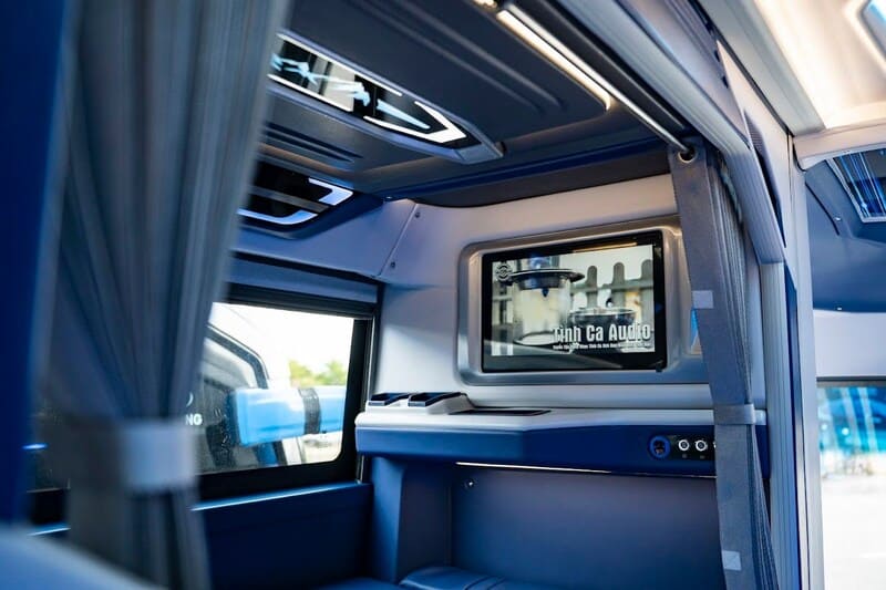 Tiện ích trên xe đầy đủ từ cổng sạc USB, wifi tốc độ cao, màn hình giải trí LCD đến đèn đọc sách và khay để đồ tiện lợi. Hệ thống điều hòa mát lạnh đều khắp, đảm bảo chuyến đi dễ chịu trong suốt hành trình.
