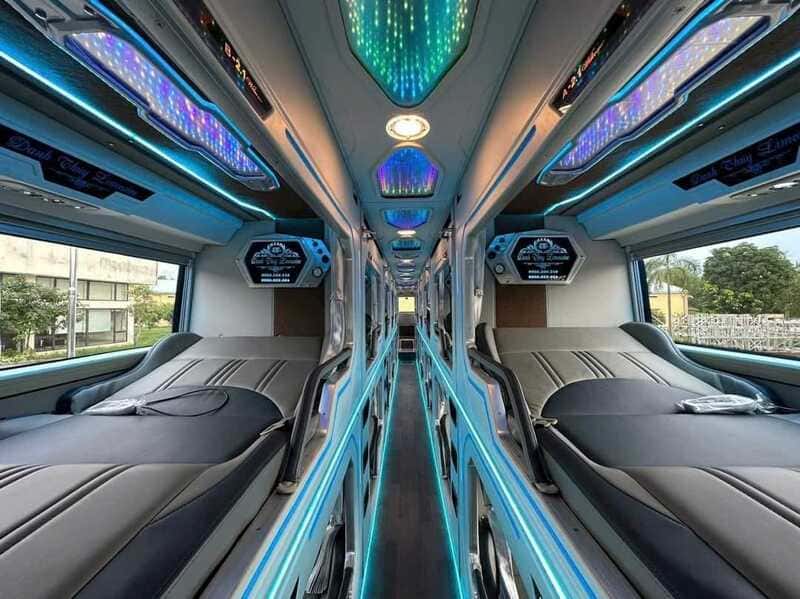 Hệ thống xe Limousine VIP 20–22 cabin được thiết kế hiện đại, mỗi giường có rèm che riêng tư, cổng sạc, wifi, chăn ga sạch sẽ và nước uống miễn phí. Không gian trên xe được ví như “phòng nghỉ di động”, mang lại sự thoải mái tối đa cho hành khách trong suốt hành trình.