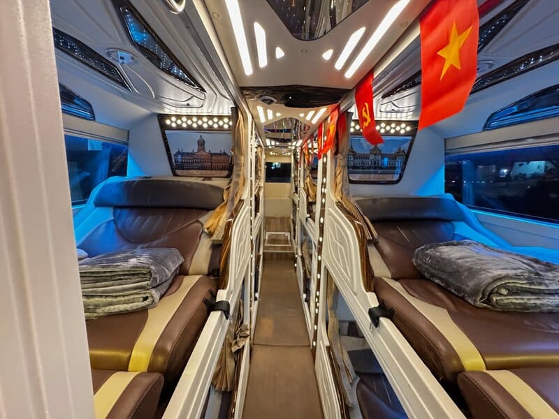 • Loại xe: Giường nằm đơn 40 chỗ, có chăn gối sạch sẽ.